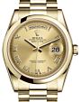 - Rolex Day-Date 36 Yellow Gold Champagne Roman Dial & Smooth Domed Bezel President Bracelet 118208 Rolex Day-Date 36 Yellow Gold Champagne ... Domed Bezel President Bracelet 118208Retail Price: Regular Price $31,250 Save: $5,751 (18%) Our Price: Special Price $25,499