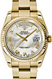 - Rolex Day-Date 36 Yellow Gold White Mother of Pearl Diamond Dial & Fluted Bezel Oyster Bracelet 118238 Rolex Day-Date 36 Yellow Gold White ... Fluted Bezel Oyster Bracelet 118238Retail Price: Regular Price $34,550 Save: $3,451 (10%) Our Price: Special Price $31,099