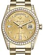 - Rolex Day-Date 36 Yellow Gold Champagne Diamond Dial & Diamond Bezel President Bracelet 118348 Rolex Day-Date 36 Yellow Gold Champagne ... Bezel President Bracelet 118348Retail Price: Regular Price $48,300 Save: $8,801 (18%) Our Price: Special Price $39,499