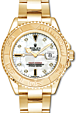 - Rolex Yacht-Master 35 168628 White Mother of Pearl Diamond Dial Yellow Gold Bezel Yellow Gold Oyster Rolex Yacht-Master 35 168628 White ... Yellow Gold Bezel Yellow Gold OysterRetail Price: Regular Price $31,950 Save: $7,051 (22%) Our Price: Special Price $24,899