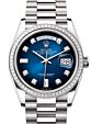 - Rolex Day-Date 36 President White Gold Blue Ombre Roman Dial Diamond Bezel 128399TBR Rolex Day-Date 36 President White Gold ... Roman Dial Diamond Bezel 128399TBRRetail Price: Regular Price $86,400 Save: $2,901 (3%) Our Price: Special Price $83,499
