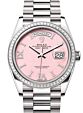 - Rolex Day-Date 36 President White Gold Pink Baguette Diamond Dial & Bezel 128399TBR Rolex Day-Date 36 President White Gold ... Diamond Dial & Bezel 128399TBRRetail Price: Regular Price $90,950 Save: $2,951 (3%) Our Price: Special Price $87,999