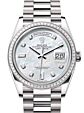 - Rolex Day-Date 36 President White Gold White Mother of Pearl Baguette Diamond Dial & Bezel 128399TBR Rolex Day-Date 36 President White Gold ... Diamond Dial & Bezel 128399TBRRetail Price: Regular Price $92,000 Save: $2,901 (3%) Our Price: Special Price $89,099