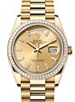- Rolex Day-Date 36 President Yellow Gold Champagne Index Dial Diamond Bezel 128398TBR Rolex Day-Date 36 President Yellow Gold ... Index Dial Diamond Bezel 128398TBRRetail Price: Regular Price $83,100 Save: $7,601 (9%) Our Price: Special Price $75,499