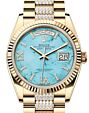 - Rolex Day-Date 36 President Yellow Gold Turquoise "Tiffany" Dial Fluted Bezel Diamond Bracelet 128238 Rolex Day-Date 36 President Yellow Gold ... Fluted Bezel Diamond Bracelet 128238Retail Price: Regular Price $104,000 Save: $9,001 (9%) Our Price: Special Price $94,999