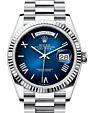- Rolex Day-Date 36 President Platinum Blue Ombre Roman Dial Fluted Bezel 128236 Rolex Day-Date 36 President Platinum Blue Ombre Roman Dial Fluted Bezel 128236Retail Price: Regular Price $60,100 Save: $1 (0%) Our Price: Special Price $60,099