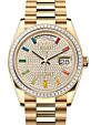 - Rolex Day-Date 36 President Yellow Gold Rainbow Colored Sapphires Dial Fluted Bezel Diamond Bracelet 128238 Rolex Day-Date 36 President Yellow Gold ... Fluted Bezel Diamond Bracelet 128238Retail Price: Regular Price $124,500 Save: $1 (0%) Our Price: Special Price $124,499