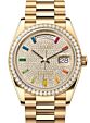 - Rolex Day-Date 36 President Yellow Gold Rainbow Colored Sapphires Dial Diamond Bezel & Bracelet 128348RBR Rolex Day-Date 36 President Yellow Gold ... Diamond Bezel & Bracelet 128348RBRRetail Price: Regular Price $143,600 Save: $10,601 (7%) Our Price: Special Price $132,999