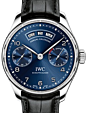 - IWC Portugieser Annual Calendar Automatic Stainless Steel Midnight Blue Arabic Dial 44.2mm Alligator Leather Strap IW503502 IWC Portugieser Annual Calendar ... Alligator Leather Strap IW503502Retail Price: Regular Price $21,500 Save: $4,301 (20%) Our Price: Special Price $17,199