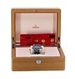 Since its launch in 1948, the Omega Seamaster has been prized not only by professional divers and sailors, but by... watch lovers from many other walks of life, including a number of celebrities. The Seamaster range includes both classic and contemporary designs to suit all tastes, and maintains a strong brand heritage throughout the line. Features common to the Seamaster collection include waterproofing, on some models to depths as great as 1200 metres, and a helium release valve to prevent damage when decompressing after use in a diving bell. Many Seamasters feature a chronograph and light up dial. Read more Show less |