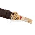 Completing the ensemble is an alligator strap with square scales, meticulously hand-stitched in shiny black, and secured with a prong buckle. This strap enhances the overall sophistication and refinement of the timepiece, ensuring a comfortable and stylish wearing experience.