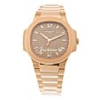 The Patek Philippe Nautilus watch was released in the mid 1970s and has since become one of the manufacturer's best-known... and most popular models. A luxury sports watch, with a distinctive design based on the portholes of a ship, the Nautilus now comes in a variety of different types, with varying complications and case materials. The rose gold material adds a sense of warmth and softness to the Nautilus design when compared to the original stainless steel design. It is also a more precious material, enhancing the sense of luxury, while some feel the color provides a more feminine appeal, and this has helped to make it a popular choice of material for women. Watches in this category include full rose gold watches, as well as two-tone rose gold and stainless steel watches. Black, blue and brown dial colors are available, while complications on some of these watches range from simple date displays, through to chronographs, moonphase indicators and day/night indicators. Read more Show less