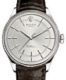 Rolex Cellini Time WatchReleased in 2014, the Cellini Time is a classic luxury dress watch, with the emphasis being placed on pure time-keeping function. It is a simplistic, round-shaped timepiece, with central hours, minutes and seconds hands and Roman numerals marking the 3, 6, 9 and 12 o'clock positions. The watch is available with a choice of white gold or rose gold case materials, while the case itself measures 39mm in diameter. The model comes with either a black alligator or brown alligator leather strap and wearers also have the option of either a white or black dial. The Cellini Time offers water resistance for 50 metres.