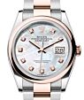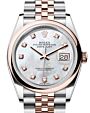 - Rolex Datejust 36 Rose Gold/Steel White Mother of Pearl Diamond Dial & Diamond Bezel Oyster Bracelet 126281RBR Rolex Datejust 36 Rose Gold/Steel White ... Bezel Oyster Bracelet 126281RBRRetail Price: Regular Price $24,450 Save: $851 (3%) Our Price: Special Price $23,599