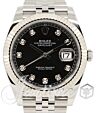 Black dials are the most common choice for those buying a Rolex Datejust 41 and provide the timepiece with a classic, understated quality. The black face is available on a large number of different models within the Datejust 41 collection and is a safe choice, which will accommodate most tastes. One of the big advantages of opting for a black dial is that it works well with any of the available case materials, as well as with most outfits. Additionally, black face dials contrast strongly with the hands and dial markers on the Datejust 41 and, as a result of this contrast, the black dial offers superior legibility to most of the other options. Black Rolex Datejust 41 Watches: