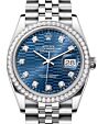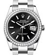 In 1945, Rolex introduced the first self-winding wristwatch chronometer equipped with an automatically changing date on the dial. The distinctive... Cyclops lens magnifies the date for easy reading. Since its introduction, the Datejust has been one of the most sought-after classic Rolexes. This flagship model provides the opportunity for many customization options and thus appeals to any taste or preference. The Lady-Datejust watches grace a woman’s wrist on any occasion, whether it be a casual day or a dinner party. Read more Show less