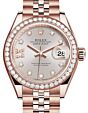 - Rolex Lady Datejust 28 Rose Gold/Steel Sundust Diamond IX Dial & Smooth Domed Bezel Jubilee Bracelet 279161 Rolex Lady Datejust 28 Rose Gold/Steel ... Domed Bezel Jubilee Bracelet 279161Retail Price: Regular Price $12,700 Save: $301 (2%) Our Price: Special Price $12,399