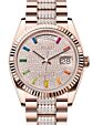 - Rolex Day-Date 36 President Rose Gold Rainbow Colored Sapphires Dial Diamond Bezel & Bracelet 128345RBR Rolex Day-Date 36 President Rose Gold ... Diamond Bezel & Bracelet 128345RBRRetail Price: Regular Price $147,200 Save: $29,201 (20%) Our Price: Special Price $117,999