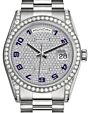 - Rolex Day-Date 36 White Gold Diamond Paved Arabic Dial & Fluted Bezel Blue Leather Strap 118139 Rolex Day-Date 36 White Gold Diamond ... Fluted Bezel Blue Leather Strap 118139Retail Price: Regular Price $51,800 Save: $7,150 (14%) Our Price: Special Price $44,650