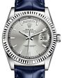 - Rolex Day-Date 36 White Gold Silver Index Dial & Fluted Bezel Blue Leather Strap 118139 Rolex Day-Date 36 White Gold Silver ... Fluted Bezel Blue Leather Strap 118139Retail Price: Regular Price $23,550 Save: $2,951 (13%) Our Price: Special Price $20,599