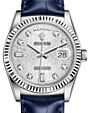 - Rolex Day-Date 36 White Gold Silver Diamond Dial & Fluted Bezel Blue Leather Strap 118139 Rolex Day-Date 36 White Gold Silver ... Fluted Bezel Blue Leather Strap 118139Retail Price: Regular Price $26,550 Save: $3,351 (13%) Our Price: Special Price $23,199