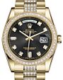 - Rolex Day-Date 36 Yellow Gold Black Diamond Dial & Diamond Set Case & Bezel President Bracelet 118388 Rolex Day-Date 36 Yellow Gold Black ... & Bezel President Bracelet 118388Retail Price: Regular Price $53,500 Save: $7,401 (14%) Our Price: Special Price $46,099