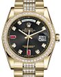 - Rolex Day-Date 36 Yellow Gold Black Diamond & Rubies Dial & Diamond Set Case & Bezel President Bracelet 118388 Rolex Day-Date 36 Yellow Gold Black ... & Bezel President Bracelet 118388Retail Price: Regular Price $53,500 Save: $7,401 (14%) Our Price: Special Price $46,099