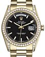 - Rolex Day-Date 36 Yellow Gold Black Index Dial & Diamond Set Case & Bezel President Bracelet 118388 Rolex Day-Date 36 Yellow Gold Black ... & Bezel President Bracelet 118388Retail Price: Regular Price $50,500 Save: $7,001 (14%) Our Price: Special Price $43,499