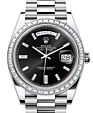 - Rolex Day-Date 40 President Platinum Bright Black Baguette Diamond Dial 228396TBR Rolex Day-Date 40 President Platinum ... Black Baguette Diamond Dial 228396TBRRetail Price: Regular Price $118,650 Save: $8,651 (7%) Our Price: Special Price $109,999