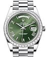 - Rolex Day-Date 40 President Platinum Olive Green Roman Dial 228396TBR Rolex Day-Date 40 President Platinum Olive Green Roman Dial 228396TBRRetail Price: Regular Price $114,100 Save: $9,101 (8%) Our Price: Special Price $104,999