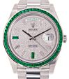 Made from gold or platinum and famously worn by President Dwight Eisenhower and other world leaders, the Rolex President Day-Date... line is established as a symbol of influence, power and status. Designed as a calendar watch, the original Day-Date I was the first watch of its type to display not only the date, but the day in full on the dial. Further technological improvements then followed with the release of the Day-Date 40, which perfectly blends design elements from its two predecessors, while embracing up-to-date aesthetics. Due to their iconic appearance and unique place in history, Rolex President Day-Date watches are among the most popular pre-owned and vintage watch models around. Read more Show less