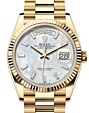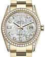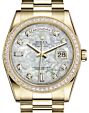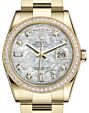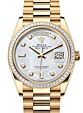 - Rolex Day-Date 36 Yellow Gold White Mother of Pearl Diamond Paved Roman Dial & Smooth Domed Bezel Oyster Bracelet 118208 Rolex Day-Date 36 Yellow Gold White ... Domed Bezel Oyster Bracelet 118208Retail Price: Regular Price $48,500 Save: $6,701 (14%) Our Price: Special Price $41,799