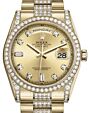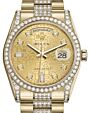 - Rolex Day-Date 36 Yellow Gold Champagne Diamond Dial & Diamond Set Case & Bezel President Bracelet 118388 Rolex Day-Date 36 Yellow Gold Champagne ... & Bezel President Bracelet 118388Retail Price: Regular Price $53,500 Save: $7,401 (14%) Our Price: Special Price $46,099