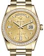 Early Rolex Day-Date models featured a 36mm case, which remained a staple of the collection for many decades. Models were exclusively constructed from valuable materials, with buyers having a choice of either white goldyellow goldrose gold or platinum, helping to add to the desirability of the watch. There are also many models with diamond bezel or diamond dial markers which add brilliance.
