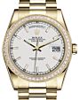 - Rolex Day-Date 36 Yellow Gold White Index Dial & Diamond Bezel President Bracelet 118348 Rolex Day-Date 36 Yellow Gold White ... Bezel President Bracelet 118348Retail Price: Regular Price $45,300 Save: $8,401 (19%) Our Price: Special Price $36,899