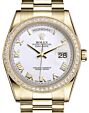 - Rolex Day-Date 36 Yellow Gold White Roman Dial & Diamond Bezel President Bracelet 118348 Rolex Day-Date 36 Yellow Gold White ... Bezel President Bracelet 118348Retail Price: Regular Price $45,300 Save: $8,401 (19%) Our Price: Special Price $36,899