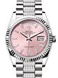 - Rolex Day-Date 36 President White Gold Pink Dial Fluted Bezel Diamond Set Bracelet 128239 Rolex Day-Date 36 President White Gold ... Bezel Diamond Set Bracelet 128239Retail Price: Regular Price $101,900 Save: $2,501 (2%) Our Price: Special Price $99,399