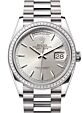 - Rolex Day-Date 36 President White Gold Silver Index Dial Diamond Bezel 128399TBR Rolex Day-Date 36 President White Gold Silver Index Dial Diamond Bezel 128399TBRRetail Price: Regular Price $86,400 Save: $2,901 (3%) Our Price: Special Price $83,499