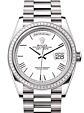 - Rolex Day-Date 36 President White Gold White Roman Dial Diamond Bezel & Bracelet 128349RBR Rolex Day-Date 36 President White Gold ... Diamond Bezel & Bracelet 128349RBRRetail Price: Regular Price $116,100 Save: $5,801 (5%) Our Price: Special Price $110,299