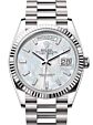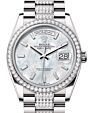 - Rolex Day-Date 36 President White Gold White Mother of Pearl Dial Diamond Bezel & Bracelet 128349RBR Rolex Day-Date 36 President White Gold ... Diamond Bezel & Bracelet 128349RBRRetail Price: Regular Price $121,700 Save: $5,901 (5%) Our Price: Special Price $115,799