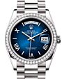 - Rolex Day-Date 36 President White Gold Blue Ombre Roman Dial Diamond Bezel & Bracelet 128349RBR Rolex Day-Date 36 President White Gold ... Diamond Bezel & Bracelet 128349RBRRetail Price: Regular Price $116,100 Save: $5,801 (5%) Our Price: Special Price $110,299