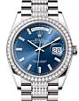 - Rolex Day-Date 36 President White Gold Bright Blue Dial Fluted Bezel Diamond Set Bracelet 128239 Rolex Day-Date 36 President White Gold ... Bezel Diamond Set Bracelet 128239Retail Price: Regular Price $101,900 Save: $2,501 (2%) Our Price: Special Price $99,399