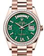 - Rolex Day-Date 36 President Rose Gold Green Aventurine Diamond Dial & Bezel 128395TBR Rolex Day-Date 36 President Rose Gold ... Diamond Dial & Bezel 128395TBRRetail Price: Regular Price $95,400 Save: $1 (0%) Our Price: Special Price $95,399
