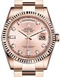 - Rolex Day-Date 36 Rose Gold Pink Diamond Dial & Fluted Bezel Oyster Bracelet 118235 Rolex Day-Date 36 Rose Gold Pink ... Fluted Bezel Oyster Bracelet 118235Retail Price: Regular Price $35,550 Save: $4,151 (12%) Our Price: Special Price $31,399