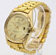 Made from gold or platinum and famously worn by President Dwight Eisenhower and other world leaders, the Rolex President Day-Date... line is established as a symbol of influence, power and status. Designed as a calendar watch, the original Day-Date I was the first watch of its type to display not only the date, but the day in full on the dial. Further technological improvements then followed with the release of the Day-Date 40, which perfectly blends design elements from its two predecessors, while embracing up-to-date aesthetics. Due to their iconic appearance and unique place in history, Rolex President Day-Date watches are among the most popular pre-owned and vintage watch models around. Read more Show less |