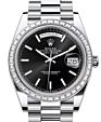 - Rolex Day-Date 40 President Platinum Bright Black Baguette Diamond Dial 228396TBR Rolex Day-Date 40 President Platinum ... Black Baguette Diamond Dial 228396TBRRetail Price: Regular Price $118,650 Save: $8,651 (7%) Our Price: Special Price $109,999