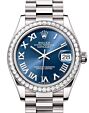 - Rolex Datejust 31 White Gold Bright Blue Roman Dial & Diamond Bezel President Bracelet 278289RBR Rolex Datejust 31 White Gold Bright ... Bezel President Bracelet 278289RBRRetail Price: Regular Price $50,700 Save: $1 (0%) Our Price: Special Price $50,699
