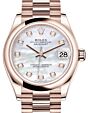 - Rolex Datejust 31 Lady Midsize Rose Gold White Mother of Pearl Diamond Dial & Smooth Domed Bezel President Bracelet 278245 Rolex Datejust 31 Lady Midsize Rose ... Domed Bezel President Bracelet 278245Retail Price: Regular Price $35,400 Save: $2,401 (7%) Our Price: Special Price $32,999