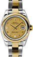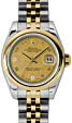 - Rolex Lady-Datejust 26 179163-CDMOPRO Champagne Decorated Mother of Pearl Roman Yellow Gold Stainless Steel Oyster Rolex Lady-Datejust 26 179163-CDMOPRO ... Yellow Gold Stainless Steel OysterRetail Price: Regular Price $9,450 Save: $551 (6%) Our Price: Special Price $8,899