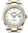 - Rolex Datejust 36 Yellow Gold/Steel White Roman Dial & Diamond Bezel Oyster Bracelet 126283RBR Rolex Datejust 36 Yellow Gold/Steel ... Bezel Oyster Bracelet 126283RBRRetail Price: Regular Price $21,300 Save: $901 (4%) Our Price: Special Price $20,399